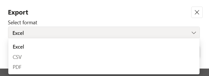 - Choose CSV, Excel, or PDF.